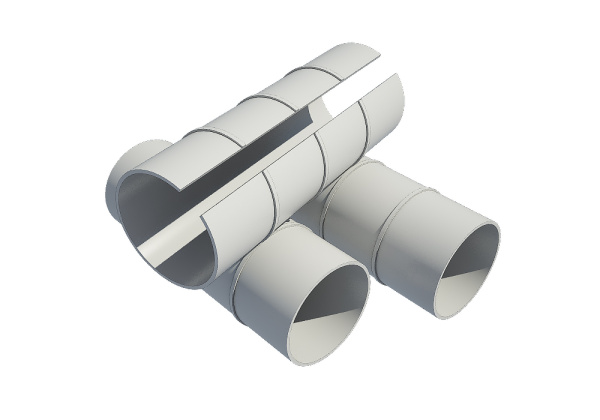 Кожуха оцинкованные могут предусматривать различную форму в зависимости от конструкции трубопровода и бывают прямые либо изогнутые под определенным углом для защиты тройников, отводов либо заглушек.